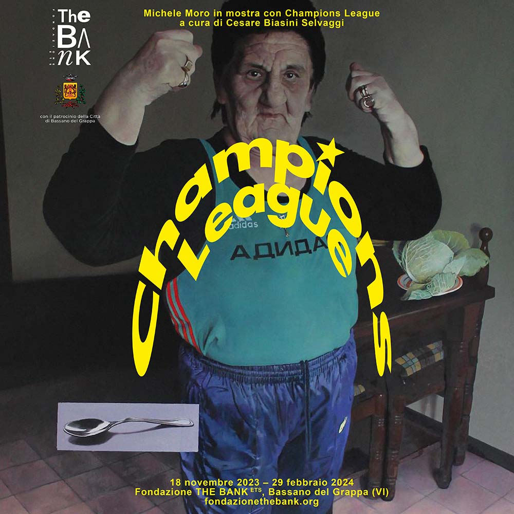 Diciotto dipinti ad olio su tela sono i protagonisti di Champions League, una mostra che presenta alcuni dei lavori più significativi di Michele Moro (Treviso, 1964), pittore cultore della qualità e del “ritorno al mestiere”, testimone e custode dei valori dell’arte.