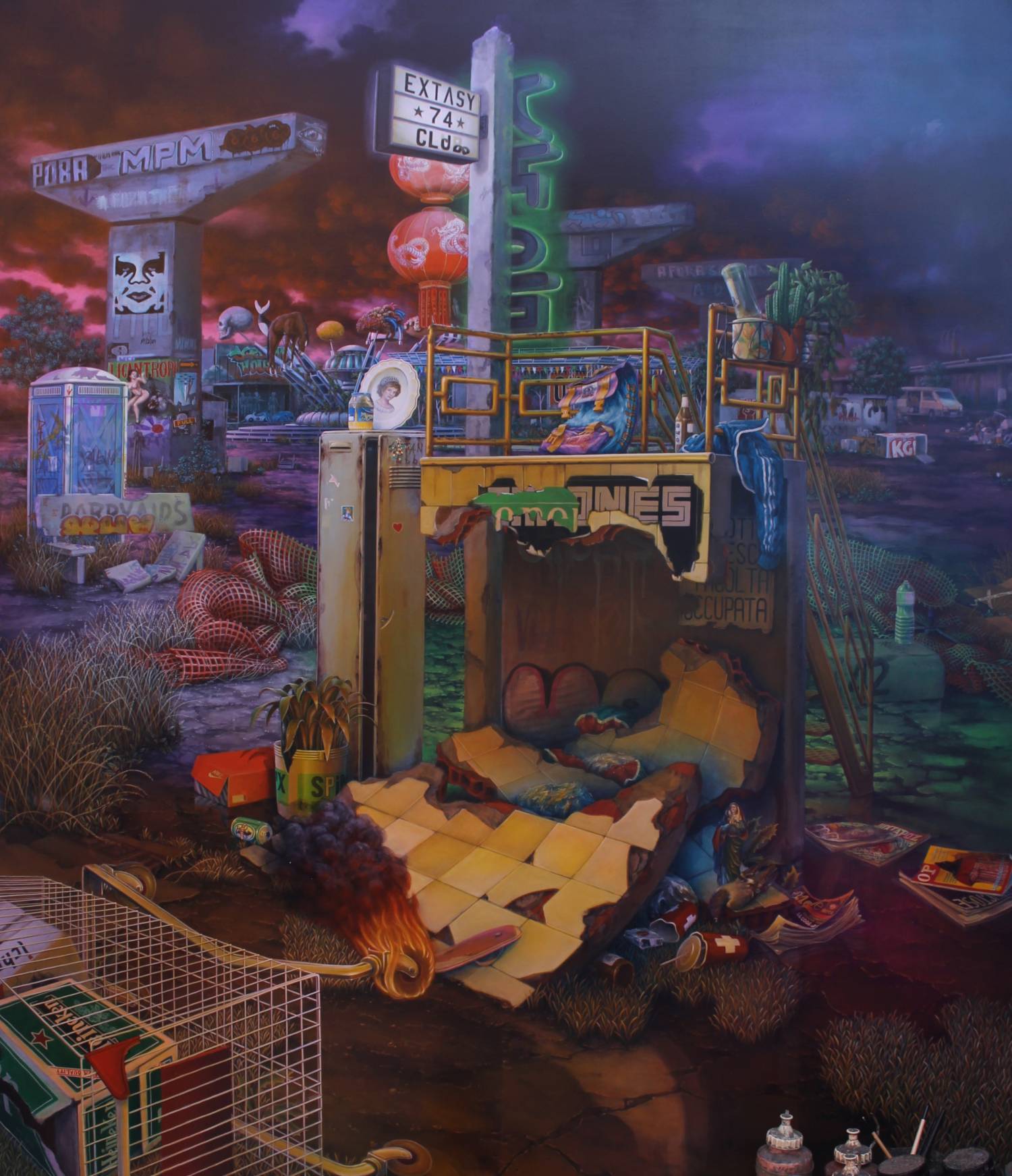 Nicola Caredda mette in scena oggetti come personaggi sensibili, parlanti e soprattutto operanti: ogni ente, manufatto, arnese e animale rappresenta un enigma, un arcano indecifrabile pur nella leggibilità delle forme e dei referenti. Sono oggetti, a detta dell'artista, "sospesi tra fisica e metafisica", ma non solo: il linguaggio metaforico, che trae linfa dalle consuetudini e dall'immaginario collettivo per emanciparsi in personali e intime codificazioni del reale, esorcizza in maniera straniante le preoccupazioni contemporanee. L'artista descrive e racconta la crisi di "allargamento dell'universo": angosce provocate da un ampliamento progressivo della connettività sociale; guerre e rivoluzioni a portata di mano; mitizzazione e promozione continua della propria personalità in un flusso di mediocrità; tutto l'universo di Caredda rende evidente il modo di affermarsi ma non la forma concreta di tale affermazione - almeno in quella forma che dava protezione all'uomo pacificato nell'animo. Questo è il nuovo paradosso surreale: nella fisionomia di componenti reali generare - e degenerare - l'espressione di una concezione individuale, mai completamente esaurita perchè infinito è il flusso della coscienza artistica. Colori fluorescenti, acidi ed esuberanti, scenari post-apocalittici e allucinanti presenze coadiuvano la critica del mondo, nelle pieghe dell'assurdo così come nella razionale dotta conversazione: l'opera è il luogo della libertà fantastica, della sospensione favolosa che viene quotidianamente uccisa e repressa. I temi dell'ambiguo rapporto tra realtà e tempo vengono evocati da spazi pubblici, insegne pubblicitarie, podi fatiscenti, casermoni vagheggianti ma anche snaturati quali alberi, piante, cavalli e delfini. E' una visione privileggiata e unica, che concede all'osservatore di entrare in contatto con il mondo labirintico e profondo, con il vuoto eterno e irrappresentabile che sta prima e dopo il tempo di oggi. Trascende la realtà usando un linguaggio onirico-visionario, crea immagini ossessivamente dense di particolari che mescolano elementi provenienti da vocabolari espressivi lontani, producendo suggestioni esaltate da un’indecifrabile carica enigmatica, una pittura di riconoscibilità, le singole cose da lui dipinte rispondono a specifiche codificazioni, non solo artistiche ma facenti parte del nostro consuetudinario visuale. Nelle sue opere oggetti sospesi fra reale e surreale, tra fisica e metafisica che raccontano di una realtà frutto di una visione tutta interiore e soggettiva. Un personalissimo linguaggio metaforico per un risultato straniante e al contempo accattivante di una pittura che tenta di esorcizzare paura e angoscia.
